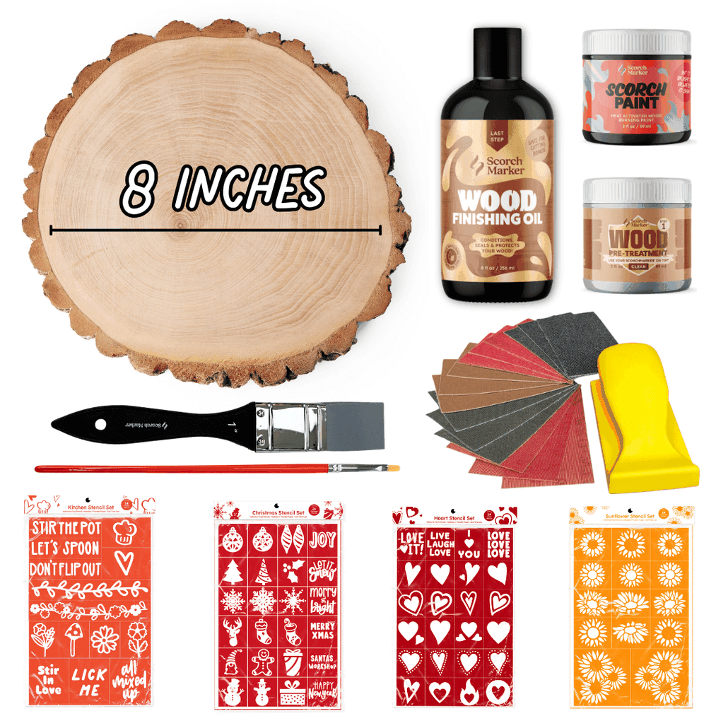 Create your very own custom giant wood slice with this complete project in a box! Makes a great center piece or display item -- or a unique gift for special events, wedding anniversaries, holidays, and more. And it comes with everything you need!