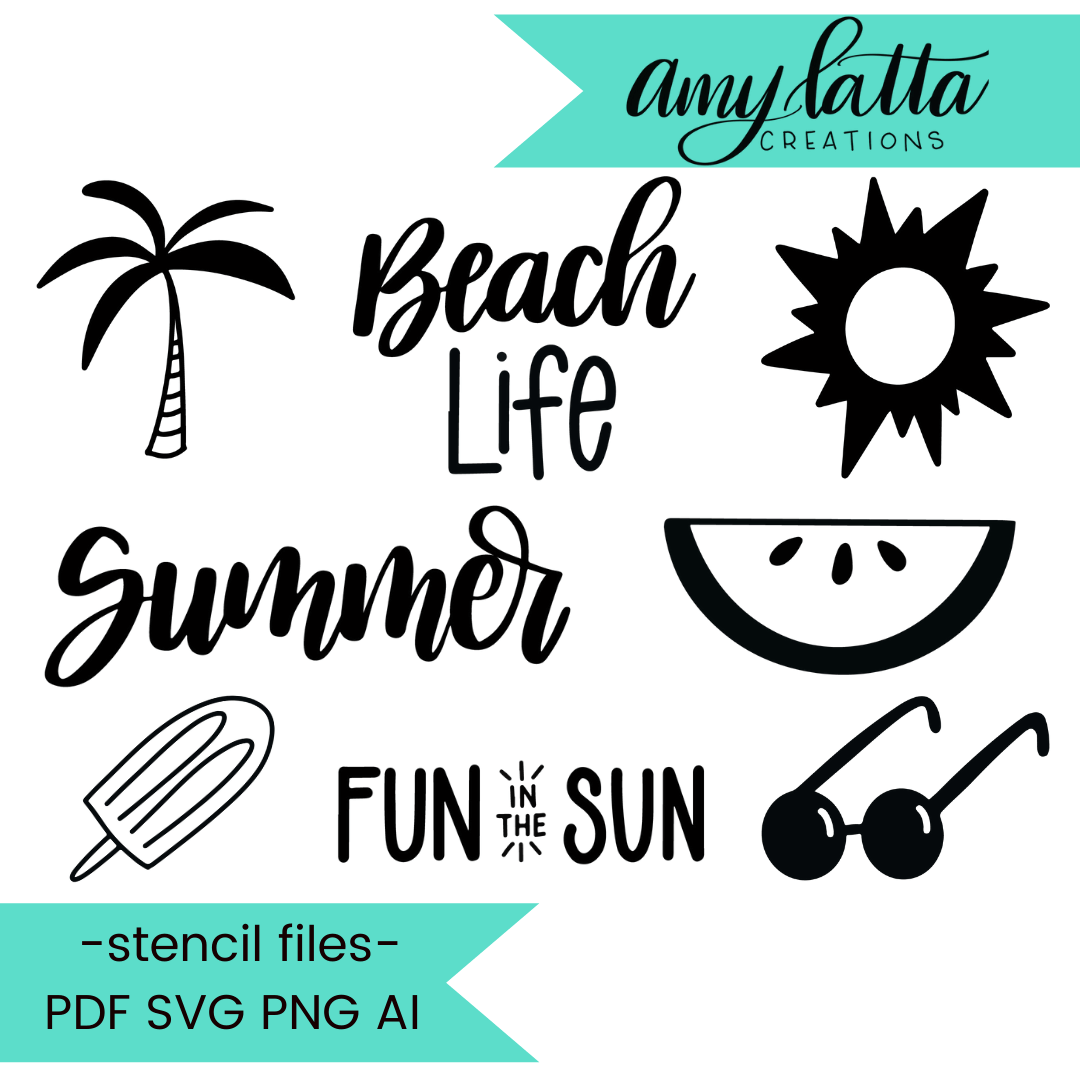 Summer Fun Stencil Cut Files! 2021 [AI SVG PNG DXF]