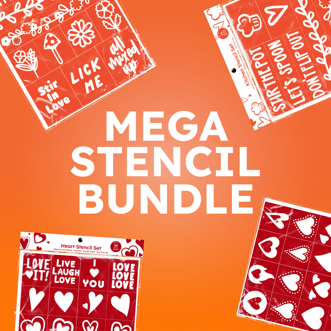 Introducing the Mega Vinyl Stencil Bundle, featuring 5 packs of stencils that you'll use up faster than you can say supercalifragilisticexpialidocious. Each pack of stencils has hand selected, original designs to save you time when you craft and get you perfect results each time. These will not last long!