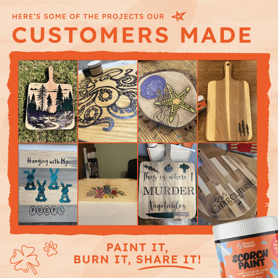Scorch Paint is an American family-owned business. Evan developed the Scorch Paint in his own wood shop in California. We truly believe in creating jobs and contributing to our country - therefore - all of our Scorch Markers, Scorch Paint and Wood products are made right here in the USA.